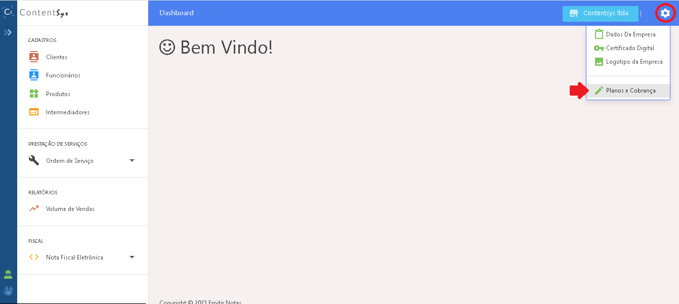 3- Selecione a opção – Planos e Cobrança.