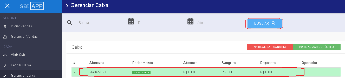 Registro de Sangrias / Depósitos
