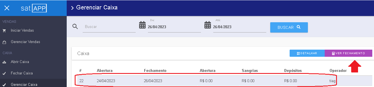 2 – Filtre os caixas de acordo com a data que deseja rever o fechamento